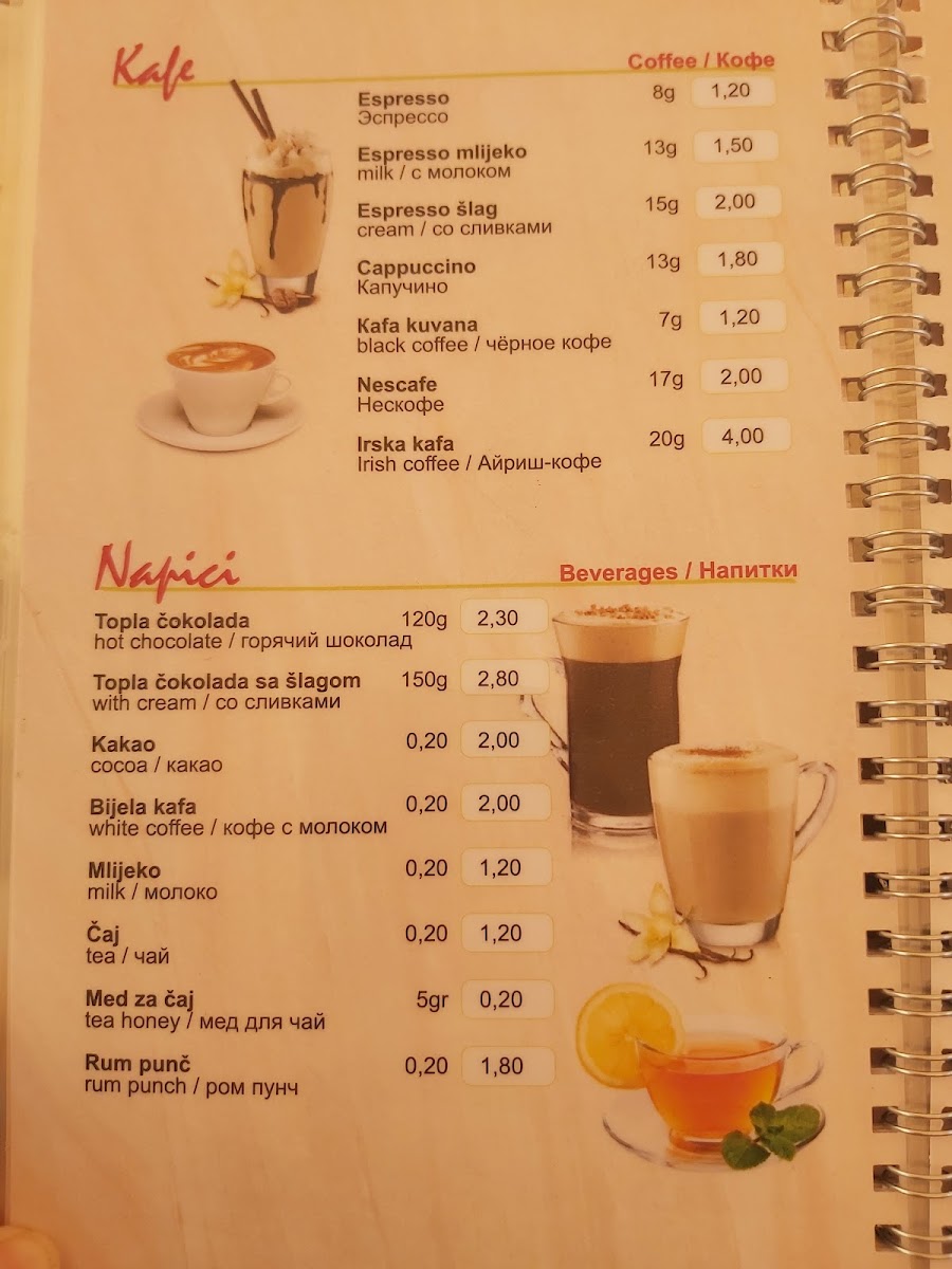 - Coffee and Hot Beverages: Various coffee preparations and traditional warm drinks.