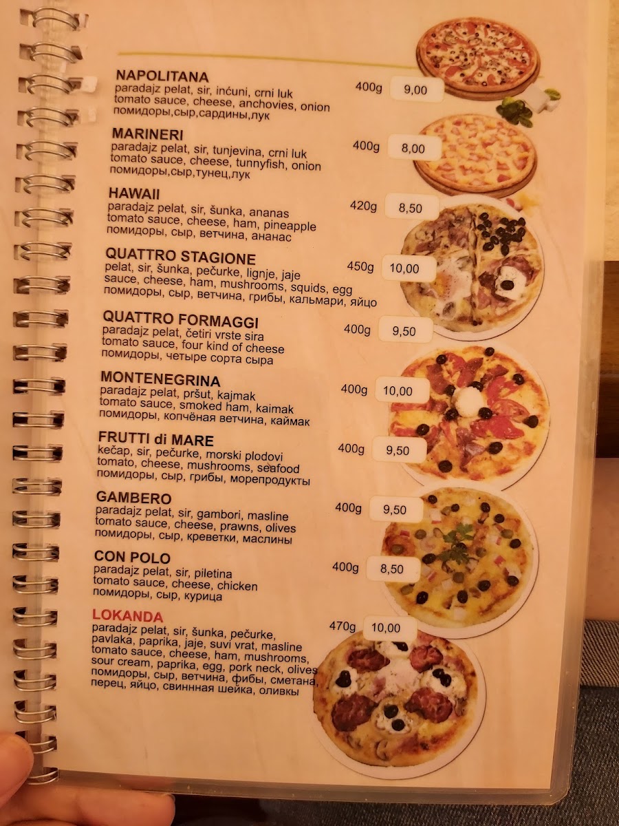The menu at Caffe bar Lokanda offers a variety of food and drink options suitable for different times of the day, including breakfast, coffee breaks, and light meals. Visitors can expect a selection of coffees, alcoholic beverages, and a range of food items that include seafood dishes, pizzas, and light snacks.